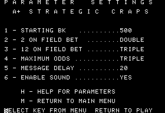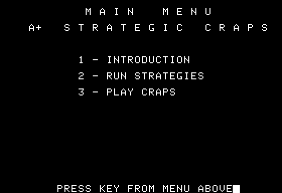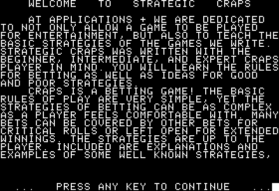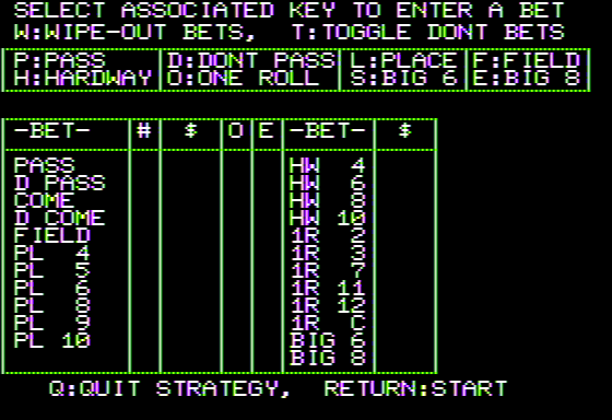I’m sorry, I couldn’t find any details about a video game titled ‘Strategic Craps’ released in 1987. Please let me know if there is anything else you would like to know!