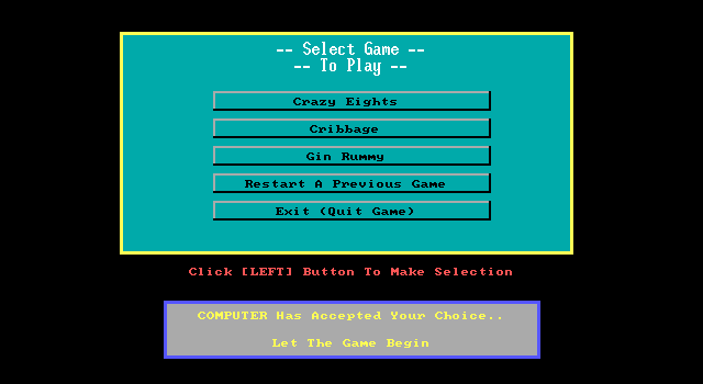 The gameplay centered around offering various card games that players could enjoy solo or with AI opponents. The mechanics were straightforward, focusing on reproducing the traditional rules of each game. The user interface was simplistic, designed to mimic a familiar tabletop setting, which was both a limitation and a charm given the period’s technological capabilies.