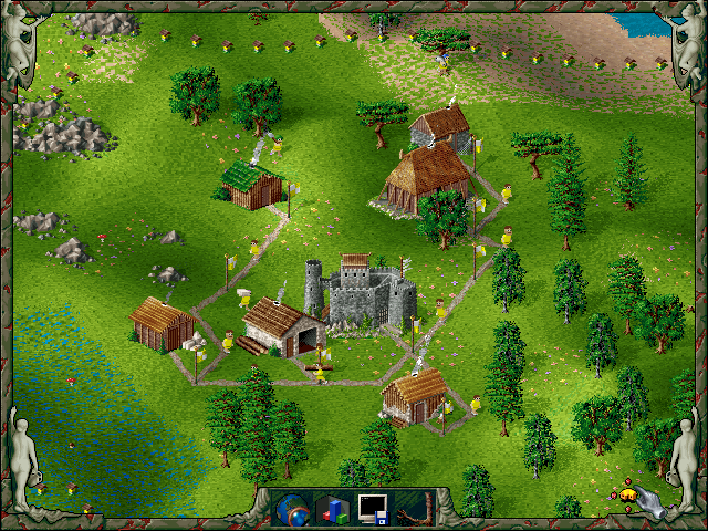 The game is played from a top-down perspective, and players can choose from different tribes, each with unique characteristics. The key mechanics of the game include road construction for transportation, mining resources, constructing buildings, and military conquest. Players also need to manage the production of goods, such as food and tools, to maintain the economy and support military operations.