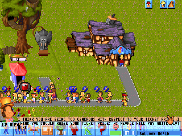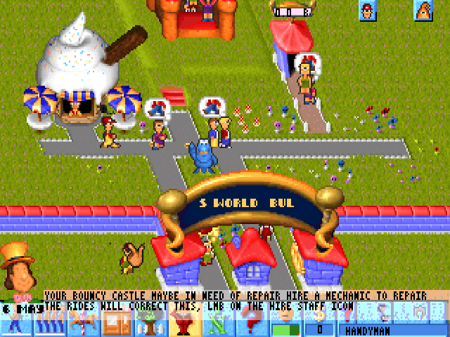 The game challenges players to construct rides, manage staff, and keep the finances of the park in the black. Strategy is key as players must set ticket prices, choose the right location for rides, and keep an eye on maintenance costs and supply levels. Players also need to ensure that visitors are happy, which means shorter queues and affordable fun.