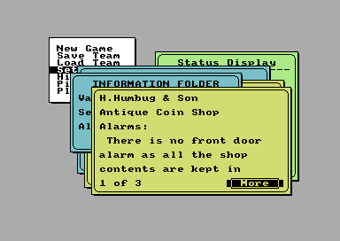 This 1986 game, developed by Tigress Marketing, is a notable entry into the genre of heist-based video games. The game focuses on strategy and resource management, challenging players to plan and execute a successful robbery.