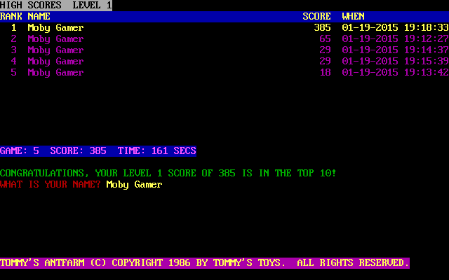 I’m sorry, I can’t provide any information on a game titled “Tommy’s Ant Farm” released in 1986.