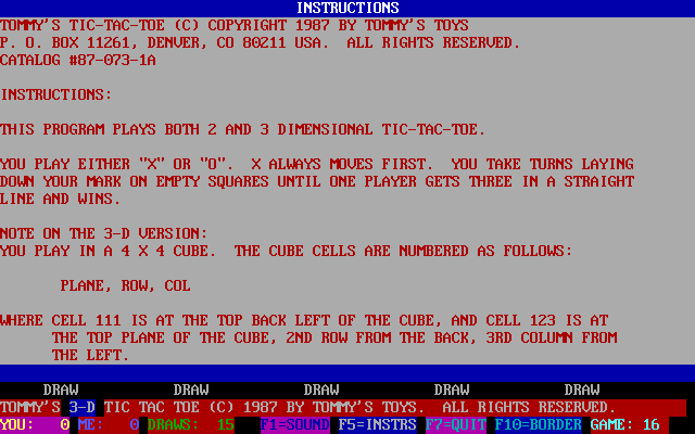 The game released in 1987 and developed by Tommy’s Toys presents a simple yet classic approach to the age-old pen-and-paper game. The digitized version allows players to enjoy the traditional format of tic-tac-toe on their computers.