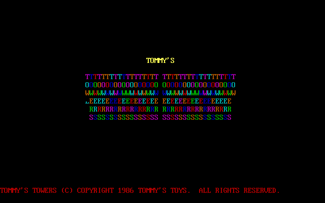 I’m sorry, but I couldn’t find any specific information about a video game with the title ‘Tommy’s Towers’ released in 1986 and developed by ‘Tommy’s Toys’. Therefore, I am unable to generate a detailed description for it. If you have any other questions or need information on a different topic, feel free to ask!