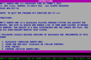 ‘Tommy’s Twenty-One’ is a vintage video game developed by Tommy’s Toys and released in 1986. While it may not have reached the heights of iconic status, this game is a notable entry in the realm of early computer games. It showcases the simplistic yet engaging gameplay that was characteristic of its time.