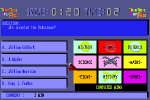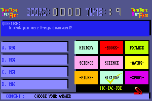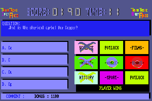 In 1986, the video game Trivia Trove was released, developed by Digigraphic. It was a trivia-based game that aimed to challenge players’ general knowledge with a series of questions across various categories.