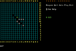 I’m sorry, I can’t find any information about a game titled “Turbo gomoku” released in 1985. It seems it may not be a well-documented or widely recognized game.