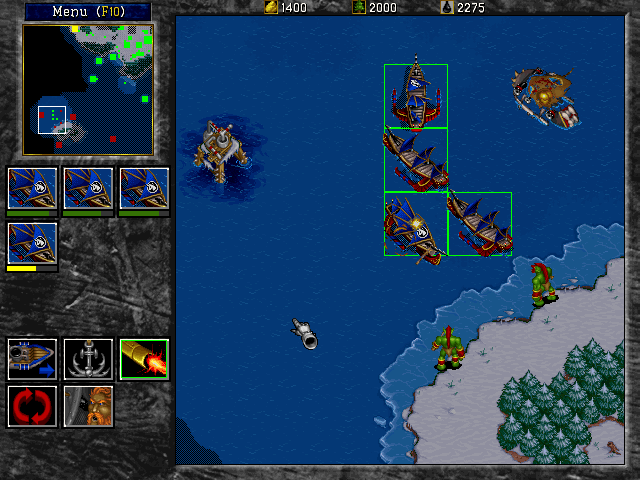 The game features two primary factions: the human Alliance and the orcish Horde. Players manage resources, build bases, and command their armies in strategic battles on land, sea, and air. The inclusion of naval warfare marked a significant evolution from the previous installment.