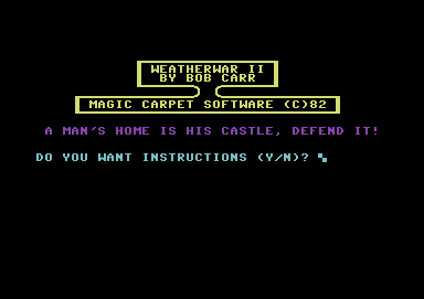 Being an early 1980s release, the game showcases basic graphics and sound design typical of the era. Despite its age, its innovative concept of using weather mechanics as a gameplay mechanism makes it stand out from its contemporaries, albeit with limited technical capabilities.